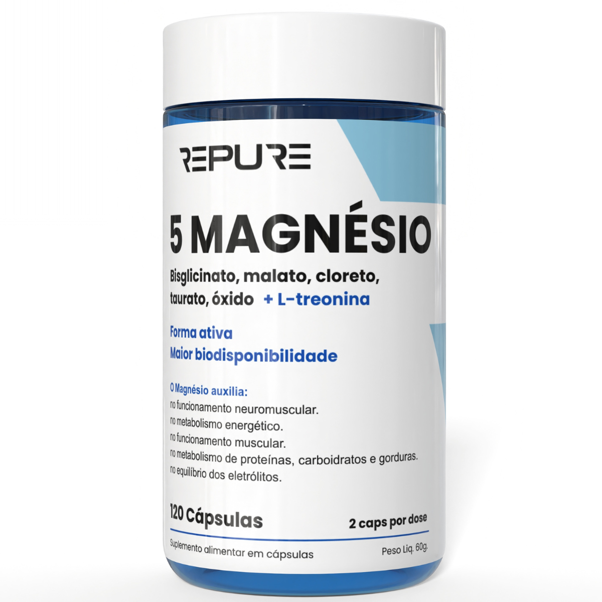 Com o 5 Magnésios Plus da Repure Nutrition, você garante uma suplementação completa com alta tecnologia de absorção. Sinta a diferença de uma fórmula pensada para sua vitalidade diária.